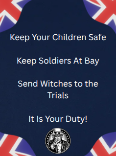 Soon, what was once the beginning of America would be an authoritarian regime. English soldiers would line the streets searching for anyone out of line. Those who commit crimes such as stealing an apple could be seen as a witch, resulting in the punishment of being sent to the trials. Propaganda would line the streets, convincing their citizens to follow what they say. Young children would be taught, as they grow up, to report “witches” to keep their friends and family safe. Rebellions and protests would certainly occur; however, due to the large number of English soldiers controlling the colony, the colonists wouldn’t have a chance.
